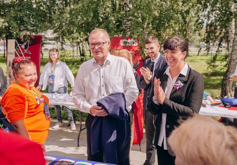 От имени Губернатора Алтайского края Виктора Томенко с Днем Государственного флага России поздравил участников фестиваля заместитель Председателя Правительства региона Игорь Степаненко. Он выразил им огромную благодарность: «Только люди доброй воли делают добрые дела. Выставочная площадка, которую сегодня здесь представили, - это лишь малая часть того огромного труда, который вы делаете. Неравнодушные люди разных возрастов из разных сфер деятельности представляют здесь разные территории нашего края. Самое ценное то, что вы по зову своего сердца занимаетесь такими важными для обществе делами – помогаете людям».