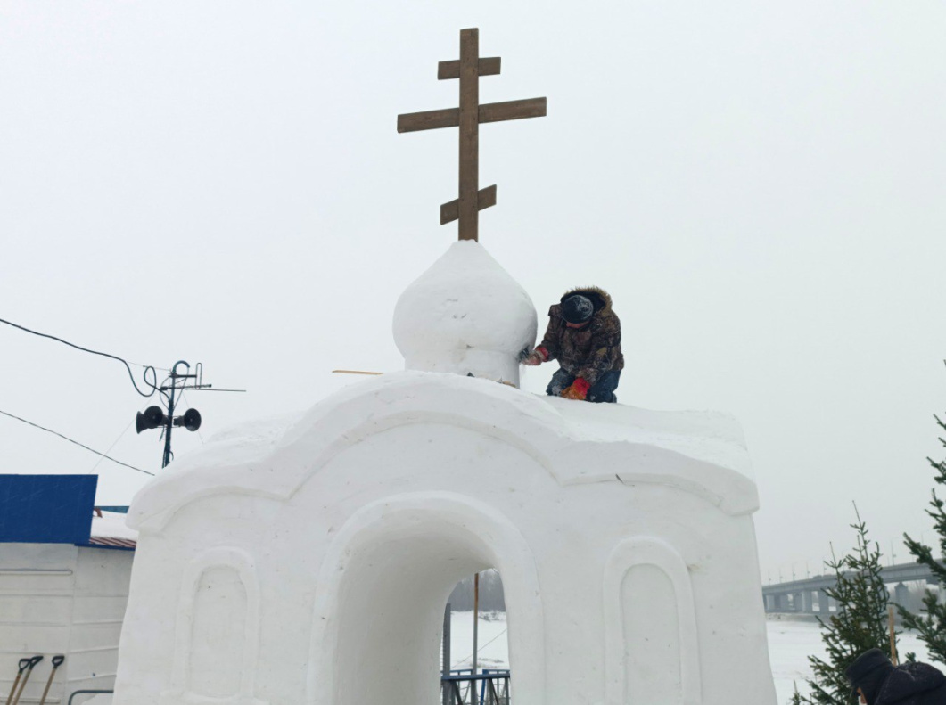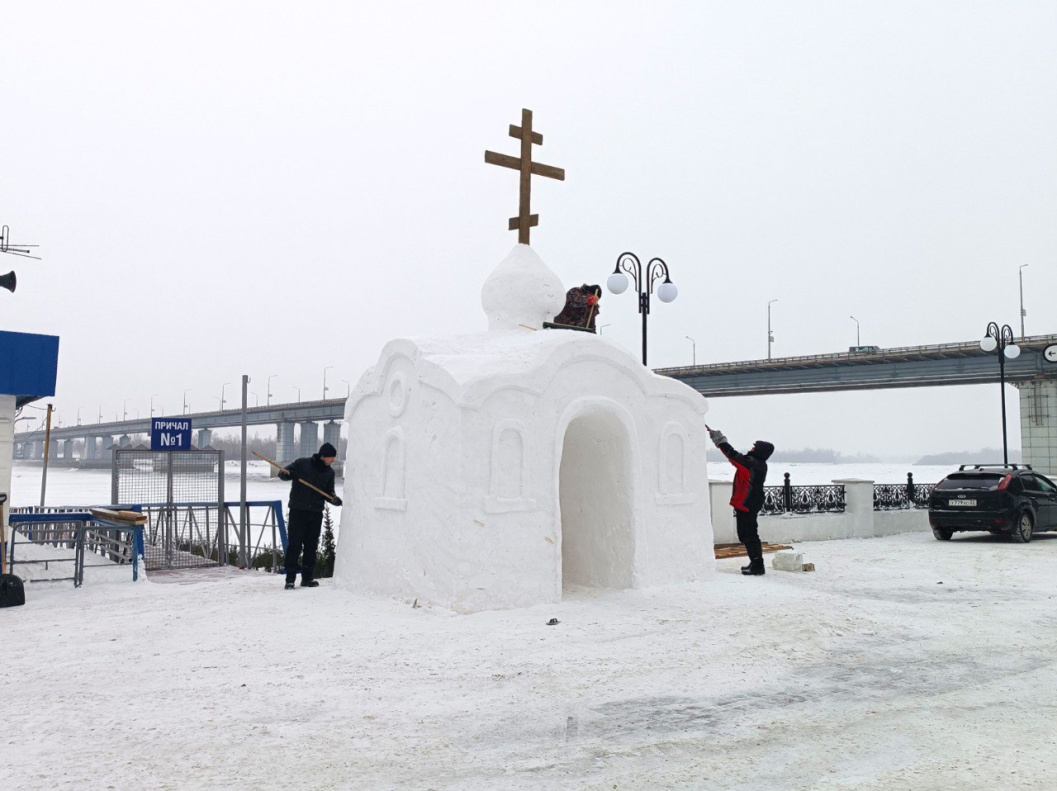 На площадке в районе Нового моста работы по оформлению Крещенского городка уже завершаются. Специалисты подрядной организации и МБУ «Благоустройство и озеленение» обустроили мостки для прохода к воде и купель для омовения, вырезали ледяной крест, смонтировали временное освещение. В настоящее время продолжаются работы по художественному оформлению снежной часовни. На последнем этапе здесь установят надувные палатки для переодевания и обогрева посетителей.
