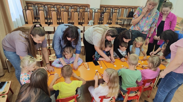 Мероприятие началось со знакомства родителей и воспитанников с Движением Первых, его значимостью и основными направлениями деятельности. Родители послушали кураторов, пообщались, а затем вместе с детьми поучаствовали в мастер-классе по плетению браслетов, создав своими руками уникальные аксессуары в цветах флага нашей страны.