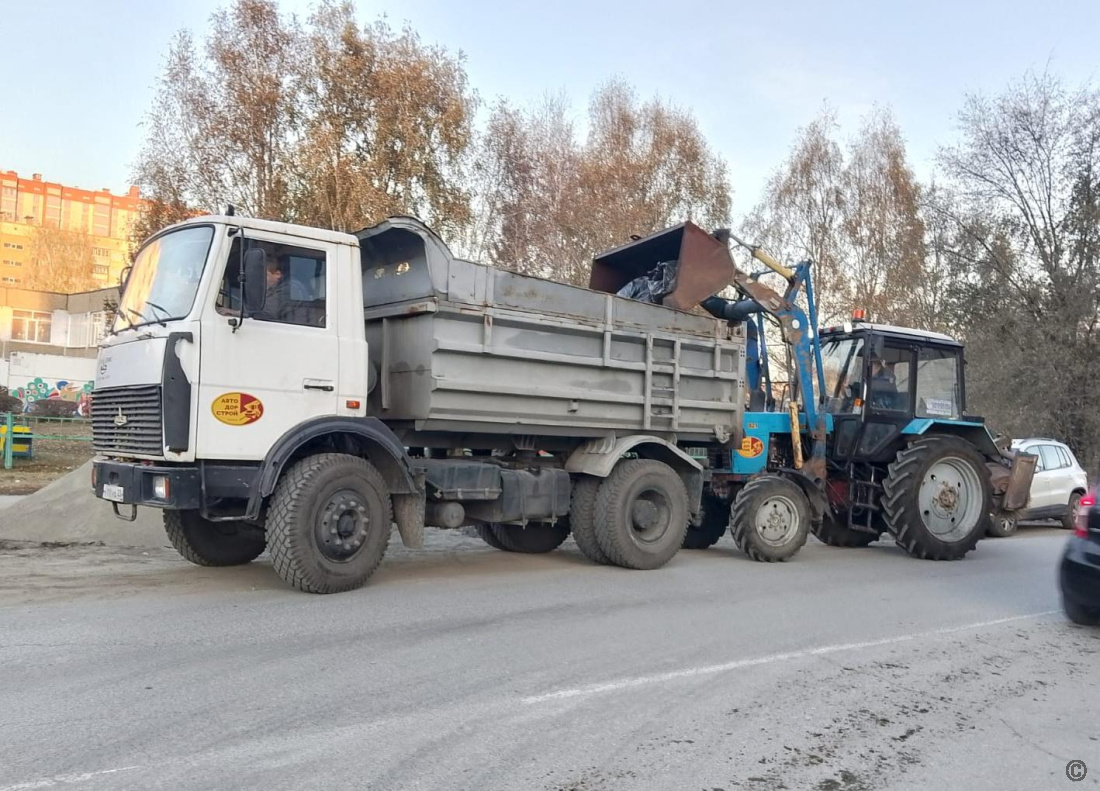 В «чистый четверг» барнаульские дорожники очищают улицы от листвы и смета, вывозят мусор