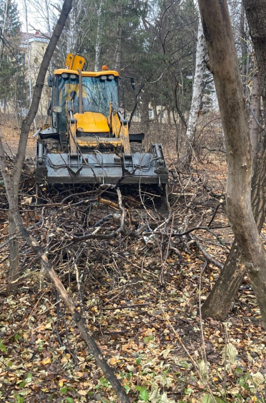 В п.Научный Городок завершены работы по сбору и вывозу порубочных остатков в зеленой зоне в районе дома №9.