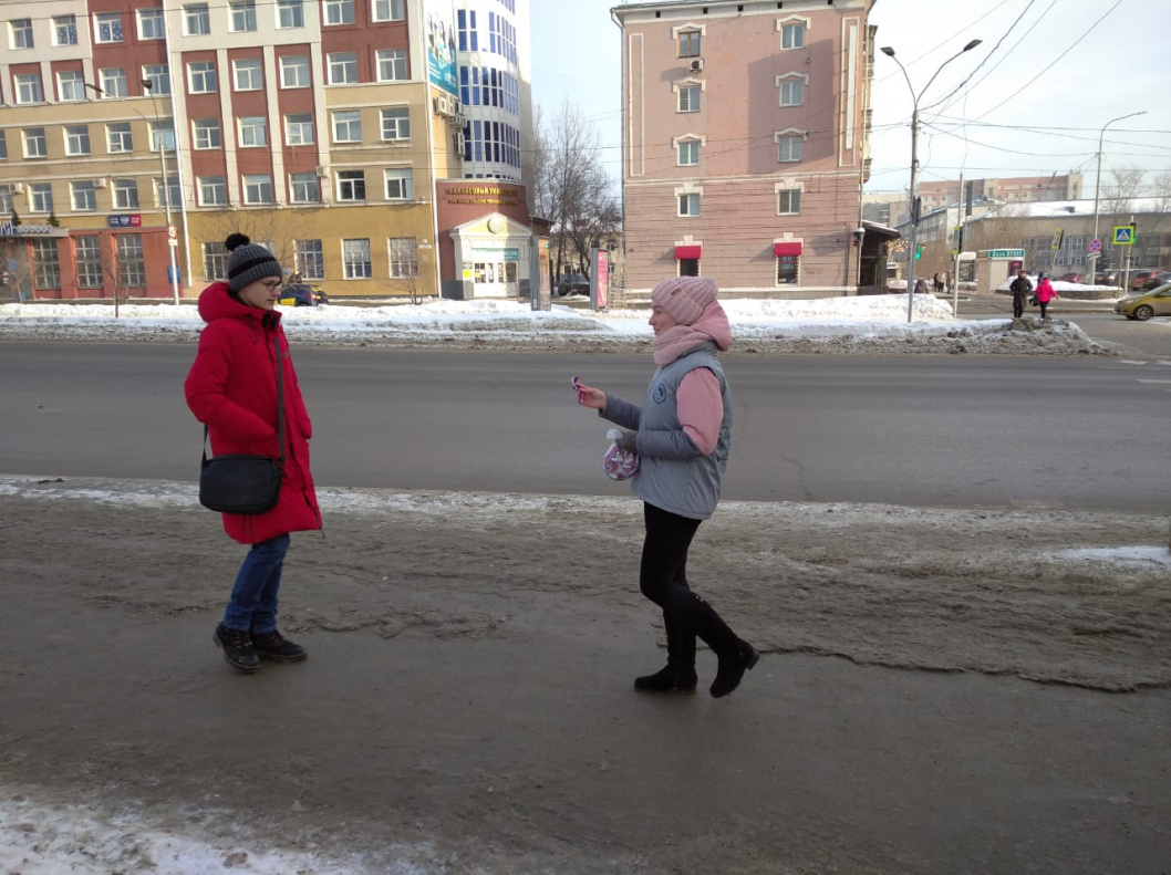 Сегодня, 12 декабря, в День Конституции России волонтеры раздают барнаульцам ленты триколора.