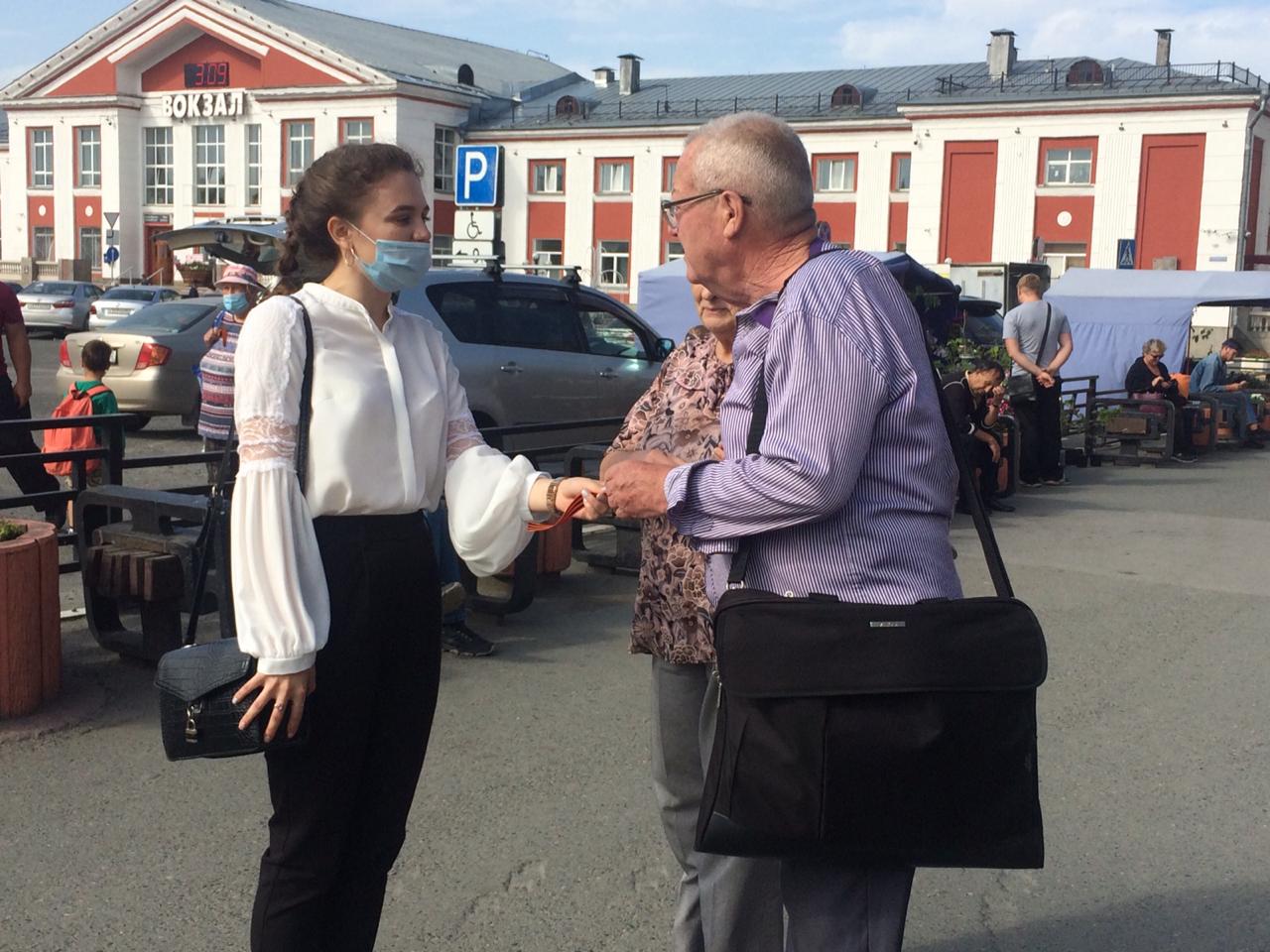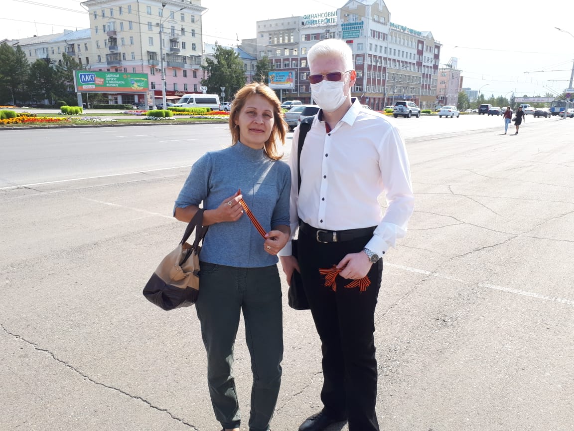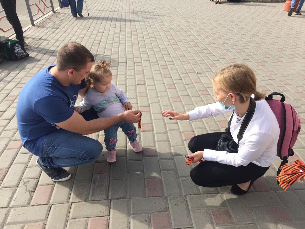 Волонтеры победы, соблюдая санитарно-эпидемиологические требования, раздавали ленточки прохожим у Нулевого километра, рядом со зданием ЦУМа, на набережной Оби, у железнодорожного вокзала и автовокзала.