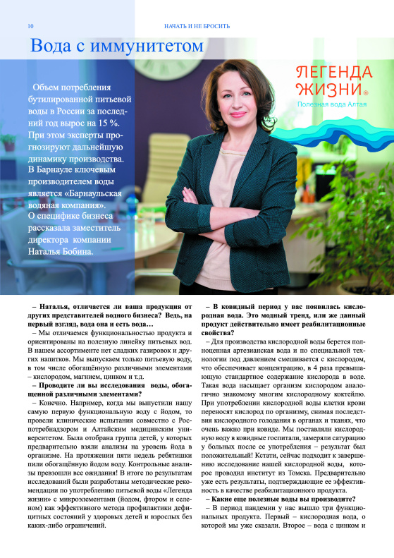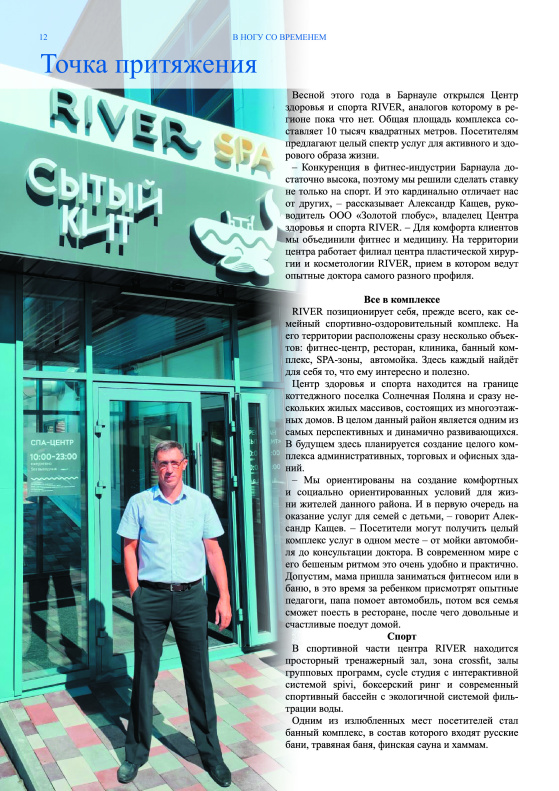 В свежем выпуске читатели могут узнать про историю успеха предпринимателей Анатолия Каныгина (Торговый дом «Бродич») и Виктории Тулиной (супермаркет «Лэнд24»), о секрете фирмы Аллы Бязиной (кондитерский цех «Arte Bianсa»), об открытии центра здоровья и спорта «River», интервью с руководителями ООО «Агроцентр» Александром Костиным, ООО «Барнаульская водяная компания» Натальей Бобиной, предпринимателем Игорем Анциферовым (сеть салонов «Соня»), о победителях ежегодного конкурса «Лучший предприниматель Барнаула», фоторепортаж об экскурсиях школьников на предприятия города.