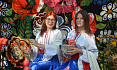 Русские красавицы в народных костюмах предлагали отведать чая с баранками и другими традиционными угощениями и сфотографироваться с матрешками, которые в большом количестве представили детские сады района.