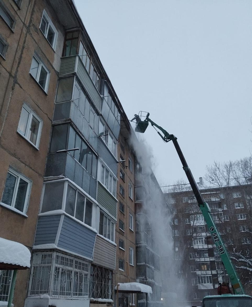 Управляющими организациями с участием 14 единиц техники и 198 дворников ведутся работы по очистке трех кровель и 31 дворовой территории в п.Научный городок, на улицах: Гущина, Попова, Юрина, Георгия Исакова, Солнечная Поляна, Островского, Антона Петрова, а также внутридворовые проезды по ул.Юрина, ул.Георгия Исакова.