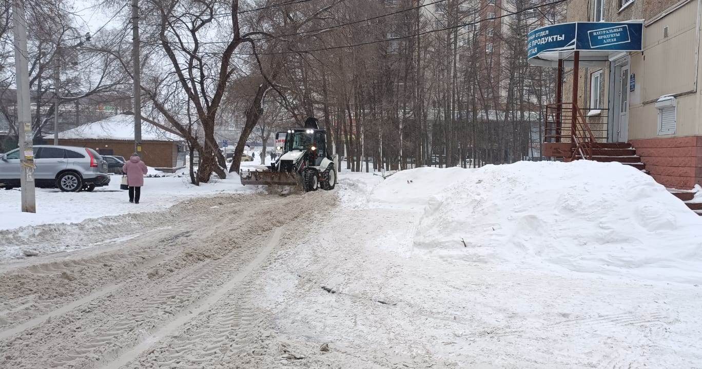 МБУ «Благоустройство и озеленение» г. Барнаула ведутся работы по очистке от снега общественных пространств механизированным и ручным способом.