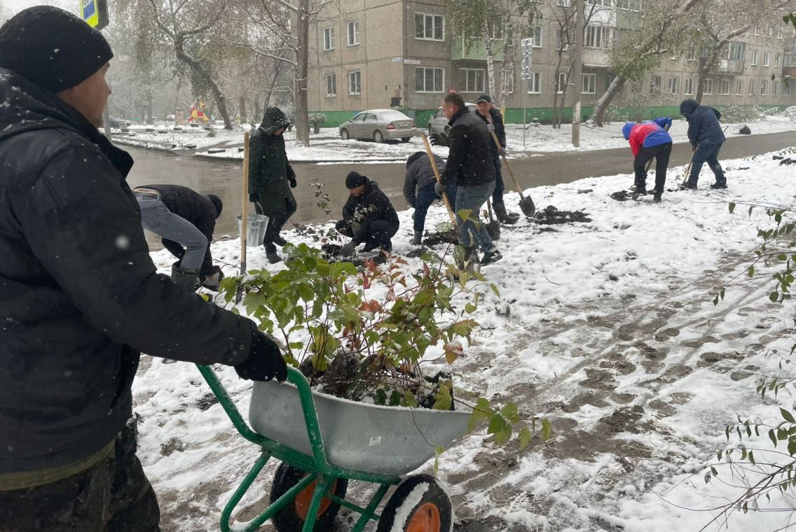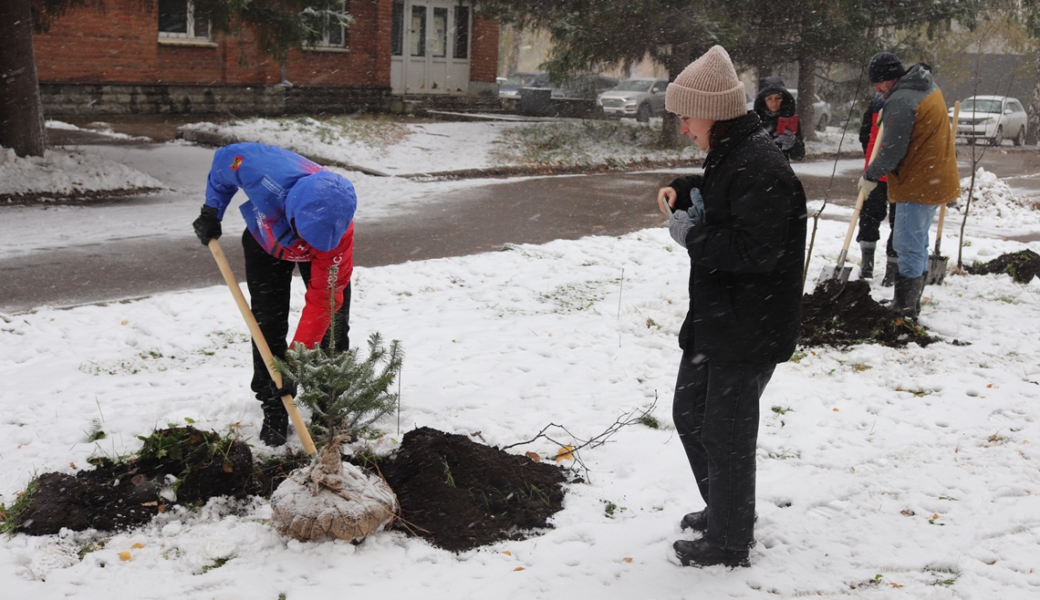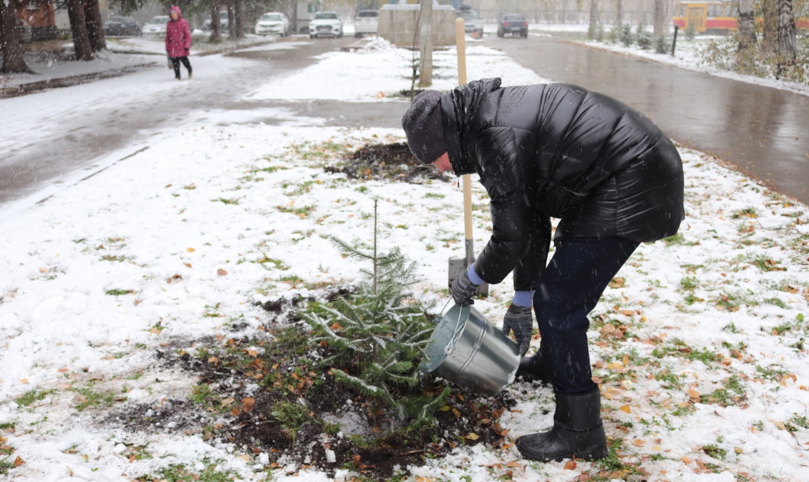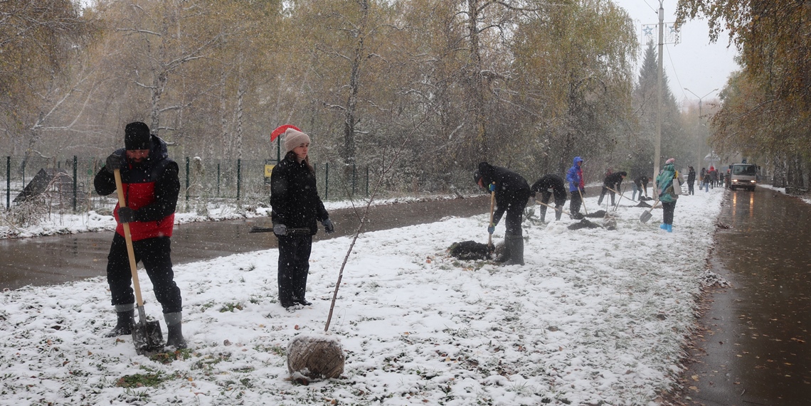 В Ленинском районе Барнаула высадили деревья в рамках месячника осенней санитарной очистки
