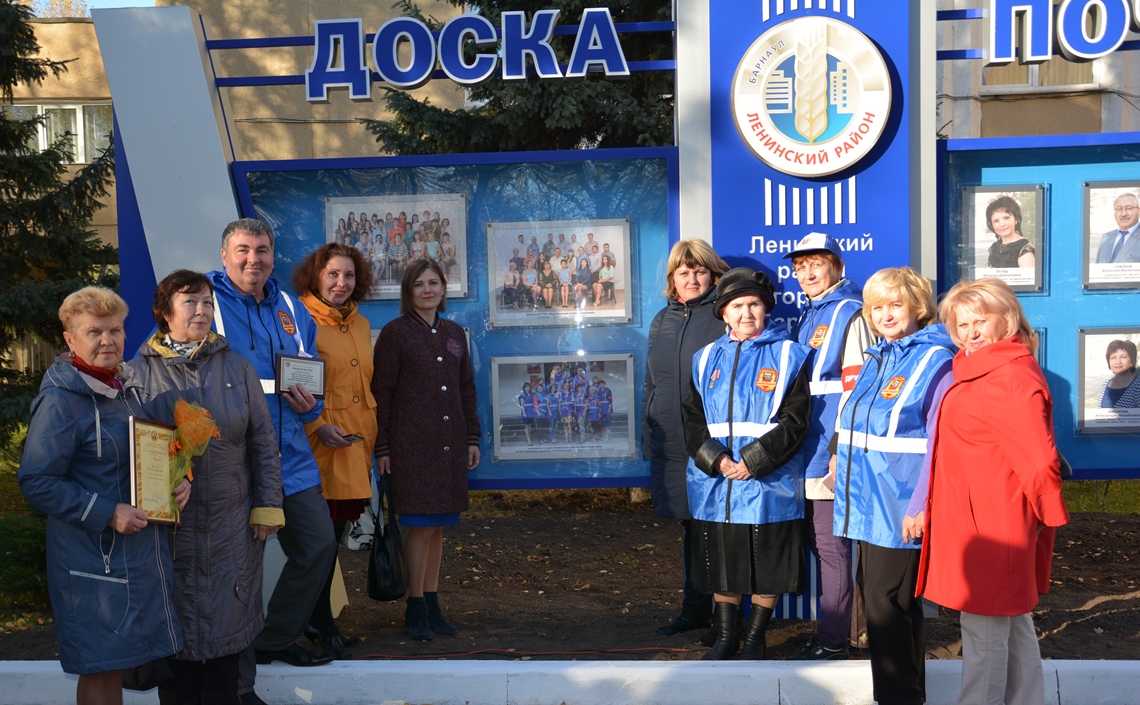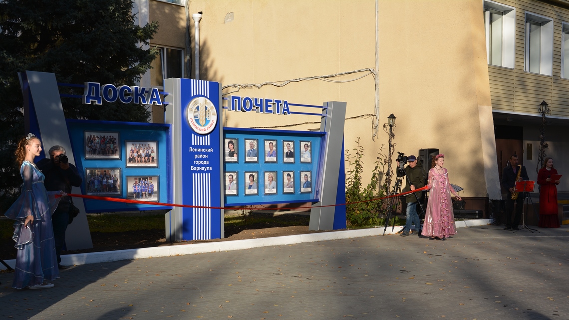 У здания администрации района, где состоялось торжественное открытие Доски Почета, гостей встретили саксофонист Барнаульского духового оркестра Павел Чалых и коллектив музея русской и европейской культуры и быта гимназии №131. Почетную миссию перерезать ленточку поручили депутату Алтайского краевого Законодательного Собрания Анатолия Суворову, председателю Барнаульской городской Думы Галине Буевич, заместителю главы администрации города по городскому хозяйству Александру Алексеенко и первому заместителю главы администрации Ленинского района по жилищно-коммунальному хозяйству Сергею Рябчуну.