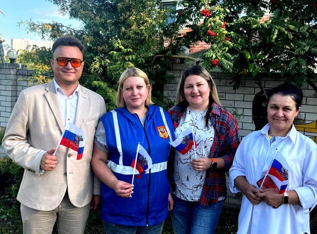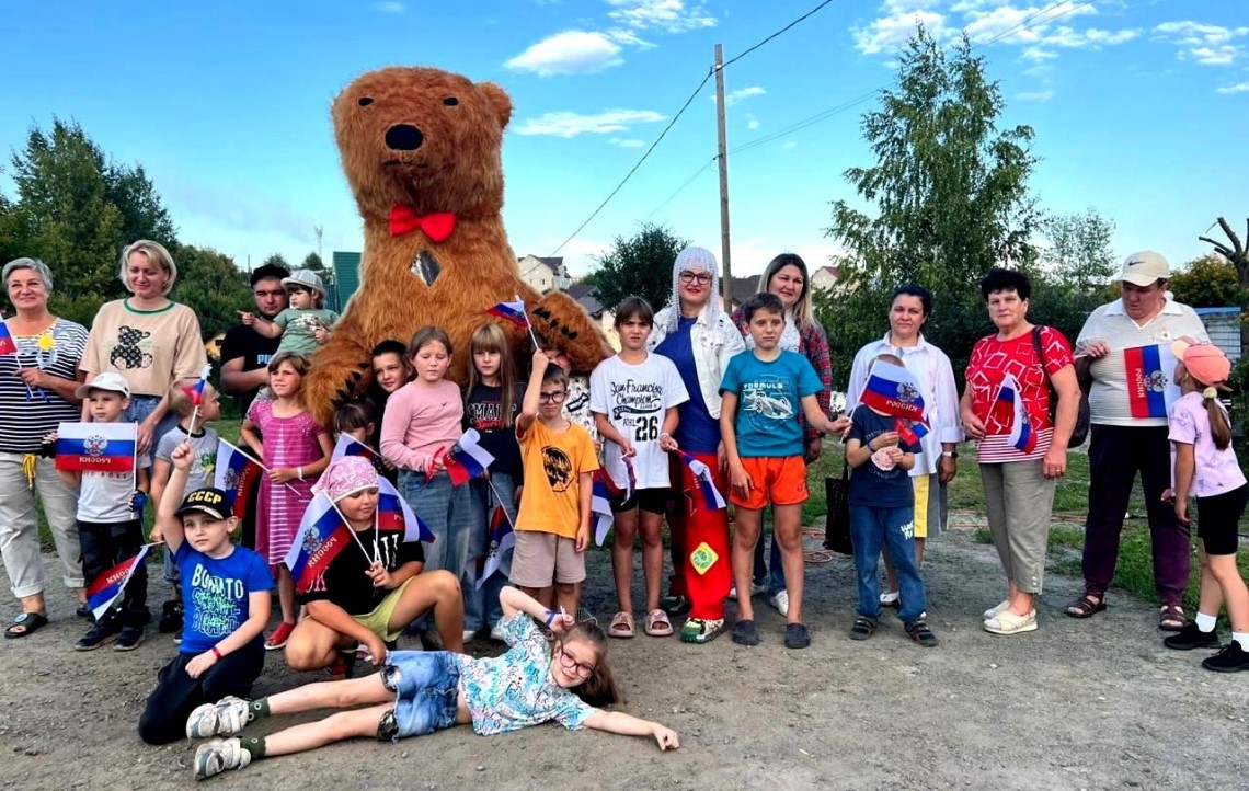 Поскольку праздник проходил в День Государственного флага Российской Федерации, то присутствующим были розданы флажки триколор.
