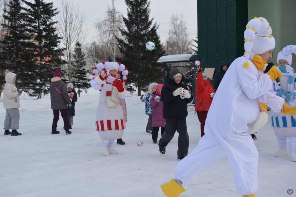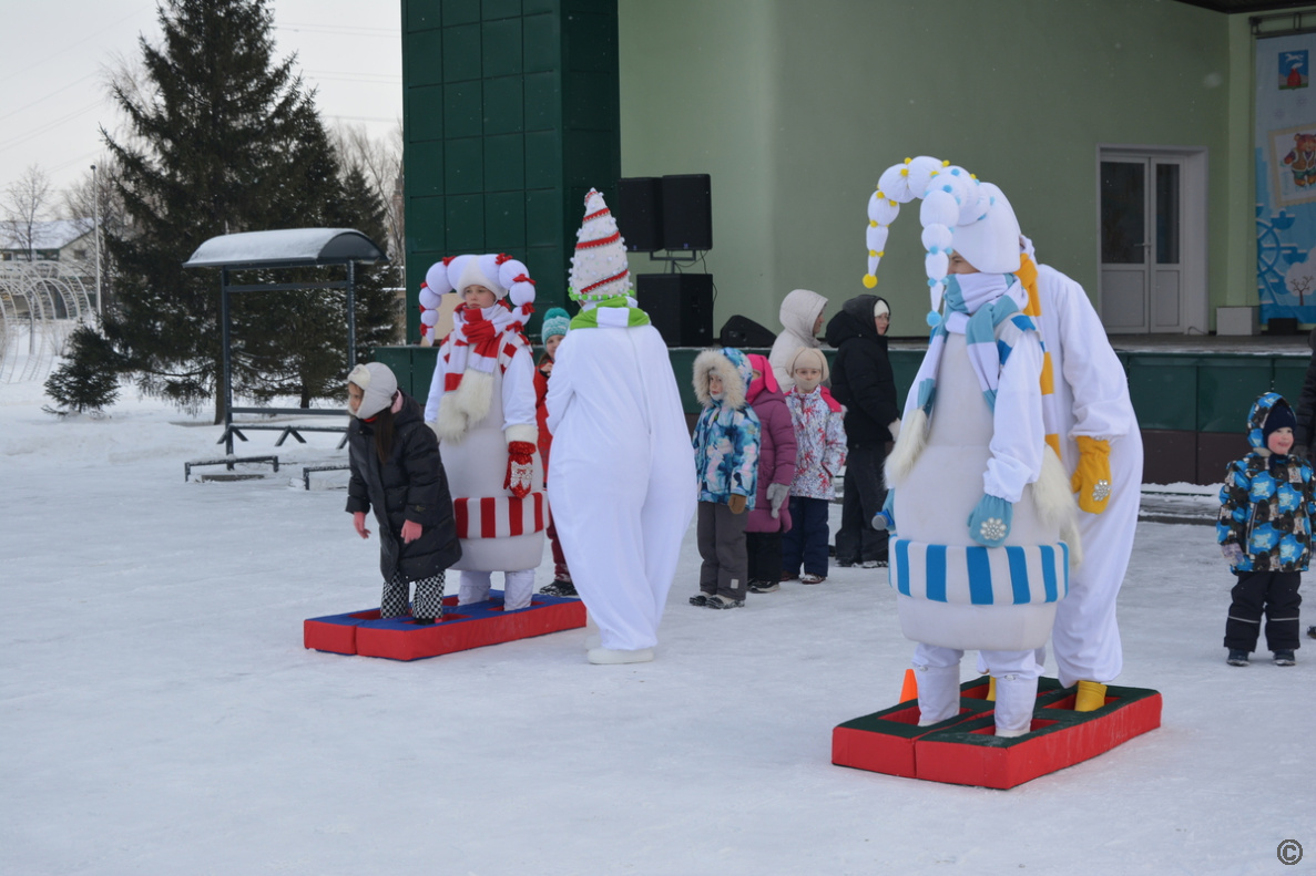 Основная тематика мероприятия – спортивные соревнования и зимние игры. Программа началась с музыкальной разминки, затем прошли игры на скорость и меткость.