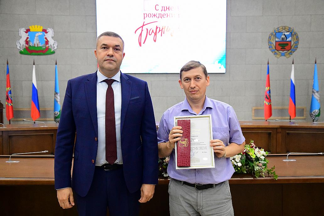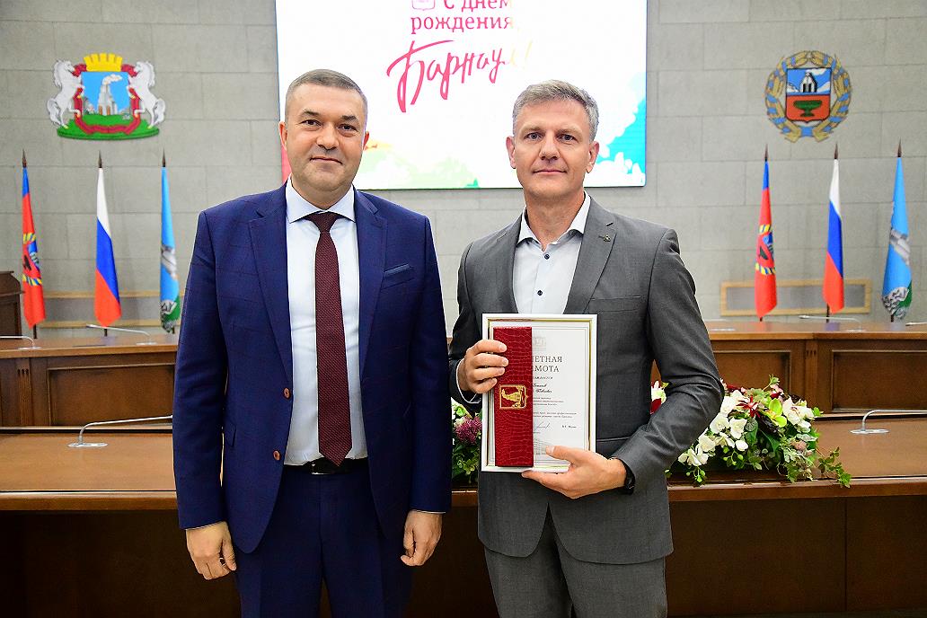 От имени администрации города, главы Барнаула Вячеслава Франка гостей с наградами и наступающим Днем города поздравил заместитель главы администрации города по экономической политике Сергей Рябчун: