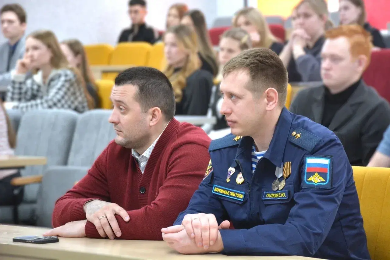Участие в показе приняли автор и режиссер проекта Елена Хорошавцева и участники специальной военной операции гв. рядовой Егор Галкин и Андрей Пименов — капитан, кавалер ордена Мужества и студены академии.