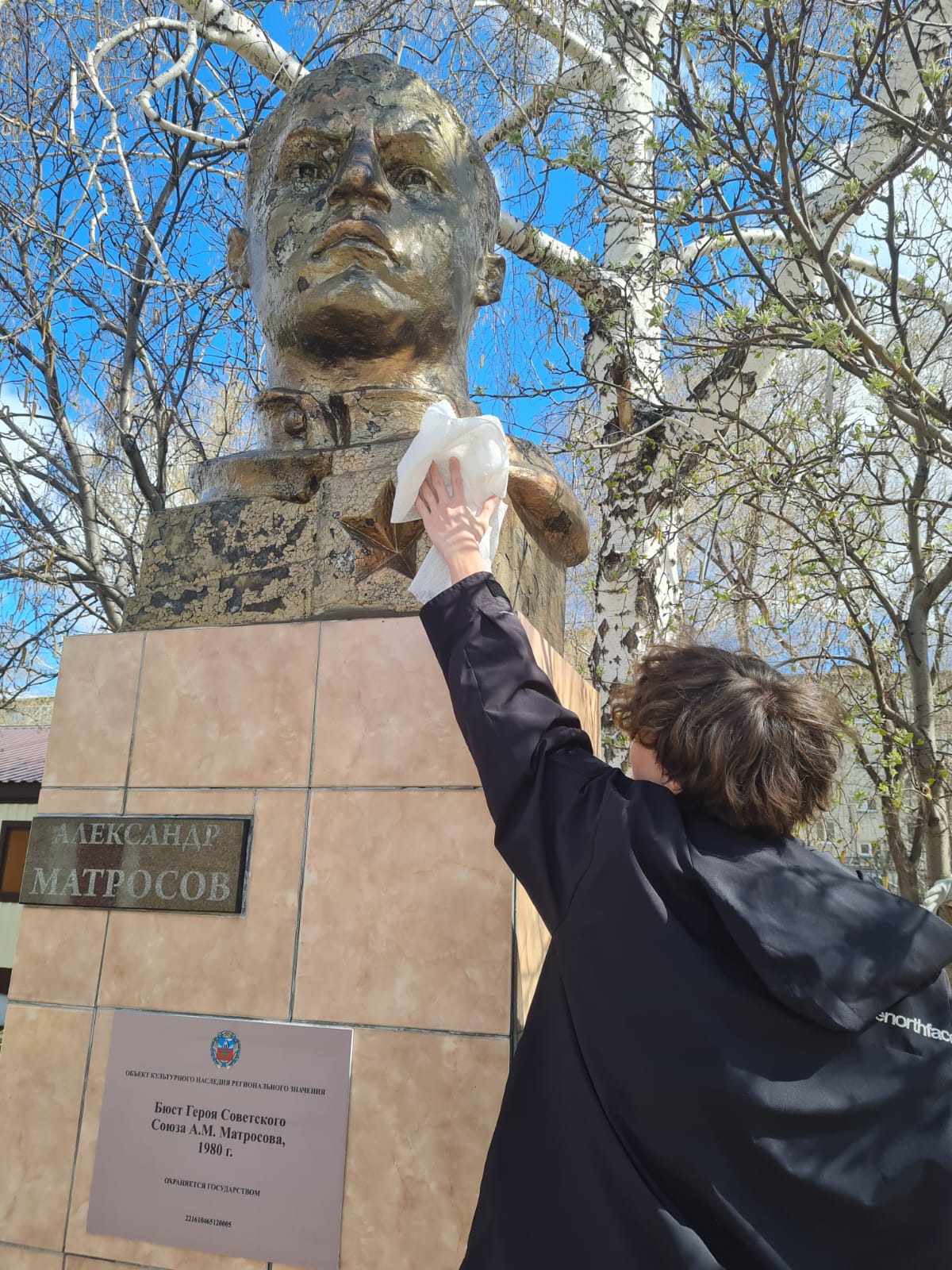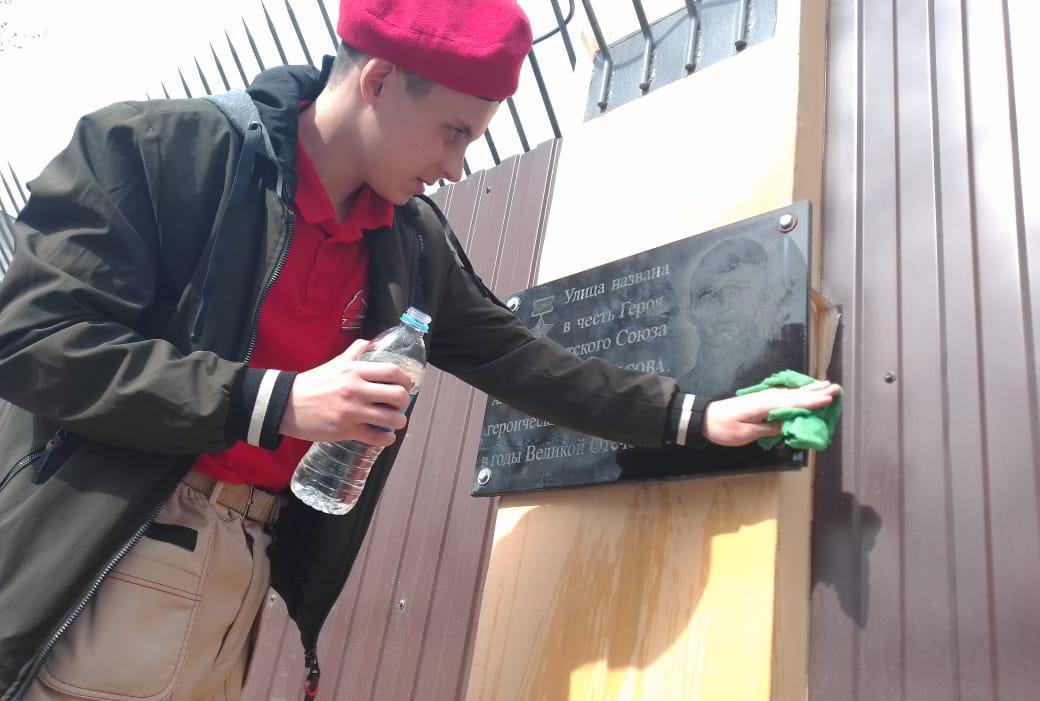 Учащиеся МБОУ «Лицей №3» привели в порядок памятную доску Героя Советского Союза Александра Матросова, героически погибшего в годы Великой Отечественной войны.