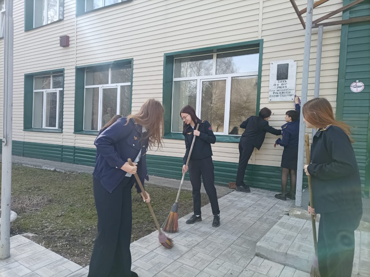 Студенты Барнаульского лицея железнодорожного транспорта очистили и помыли мемориальную доску Рублевского Владимира, выпускника учебного заведения, Героя Советского Союза.