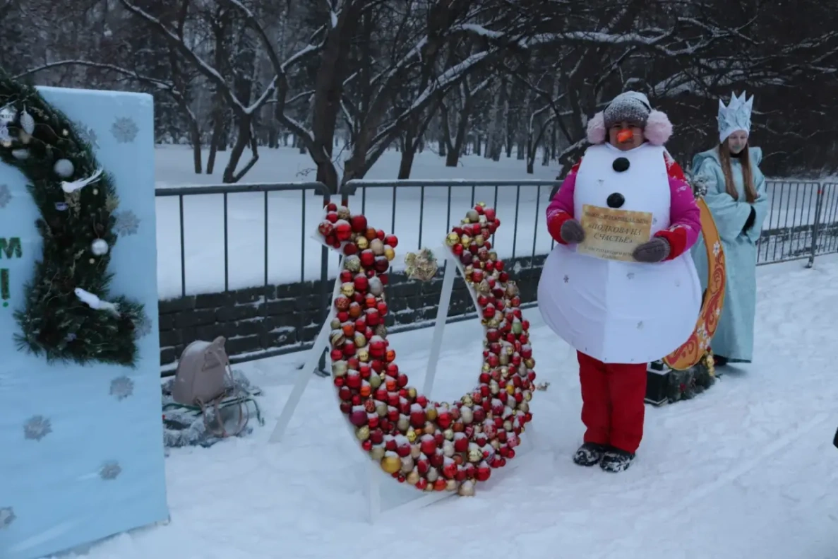 В Ленинском районе прошла праздничная программа «Навстречу счастливому Новому году» на площади Мира (ул. Георгия Исакова, 213). Мероприятие включало творческие номера, работу игровых площадок и выставку-конкурс «Подкова на счастье».