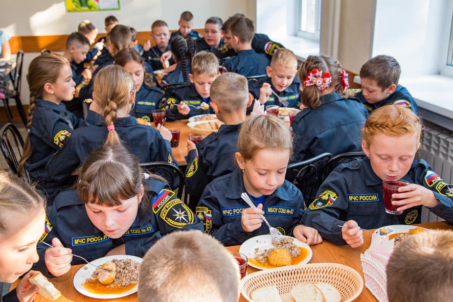 Директор школы №52 Татьяна Пономарева провела для участников встречи экскурсию по столовой. На перемене ребятам накрыли столы: сегодня в меню тефтели и каша, также подают хлеб и булочки, в качестве напитка – кисель. На вопросы, нравится ли еда, младшеклассники отвечают: вкусно!