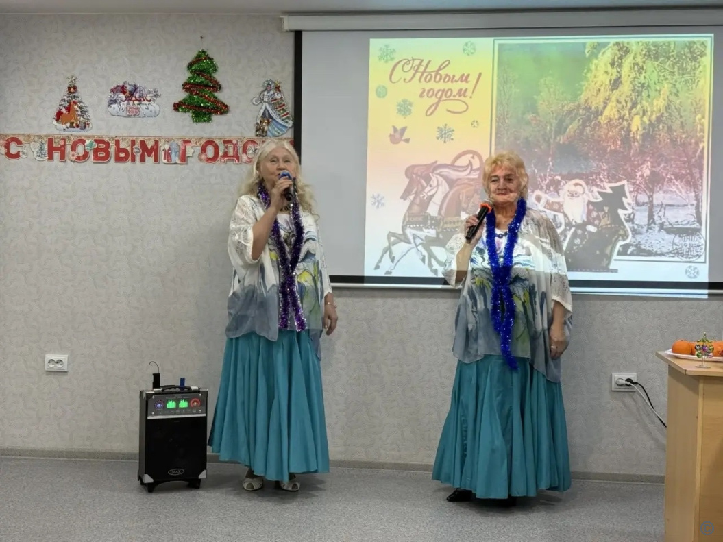 Открыли мероприятие дуэт «На два голоса» — Галина Марчукова и Валентина Кочергина, исполнив песню «А на пороге Новый год».