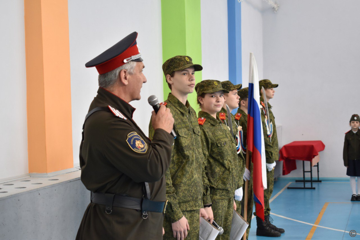 Праздник начался с торжественного выноса государственного флага Российской Федерации и исполнения гимна страны. Учащиеся продемонстрировали свои умения в показательных выступлениях, выполнив строевые приемы и фланкировку. Наиболее значимым моментом церемонии стало вручение удостоверений, подтверждающих статус ученика казачьего класса.