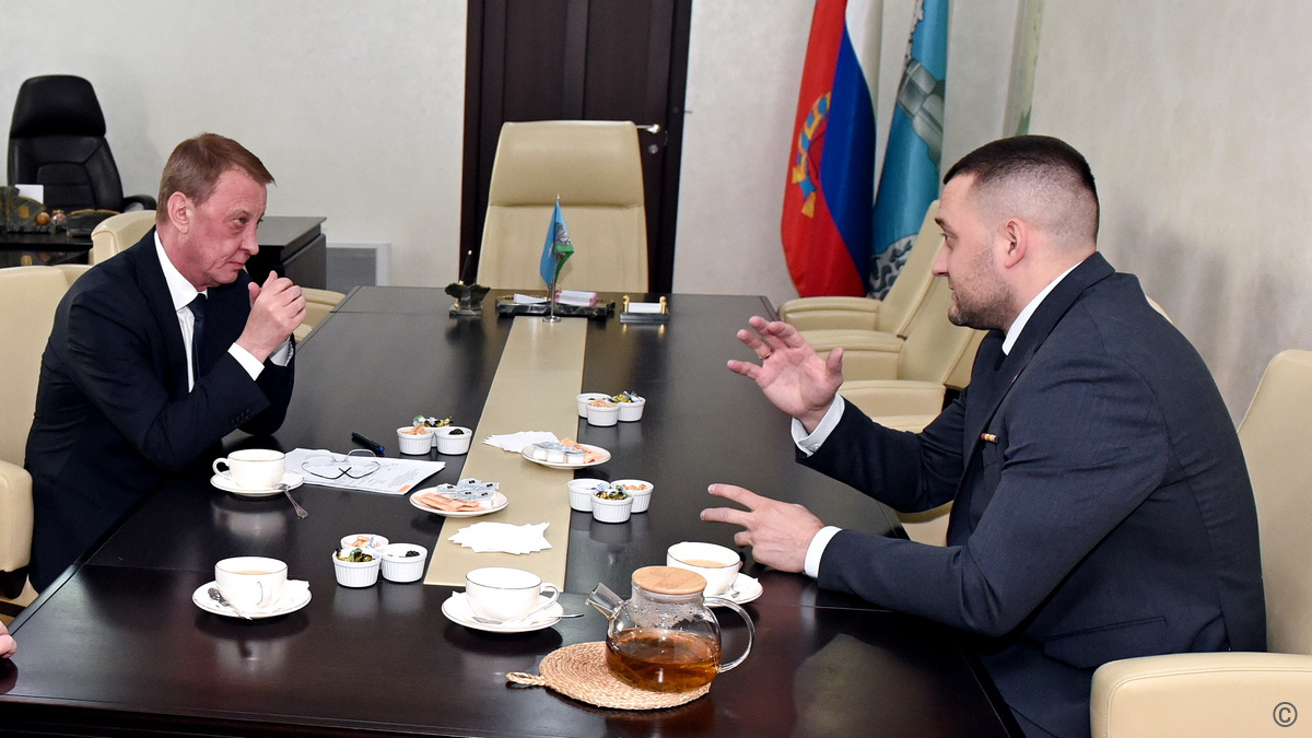 Глава города Вячеслав Франк встретился с председателем Совета регионального отделения Общероссийского общественно-государственного движения детей и молодежи «Движение Первых» Алтайского края Андреем Пиминовым.