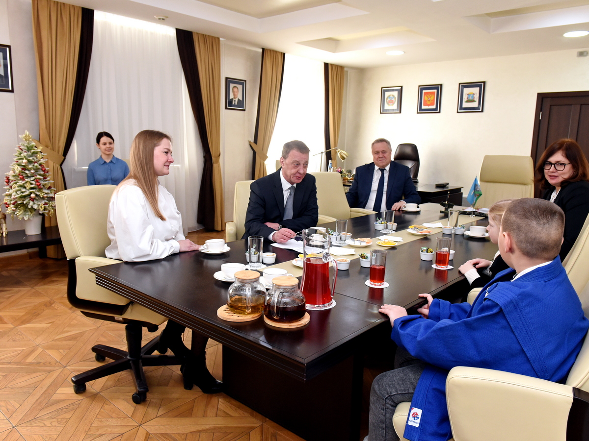 Сегодня, в преддверии Нового года, в администрации города Вячеслав Франк встретился с Тимуром Медведевым, его мамой Дарьей Александровной и младшей сестрой Варварой. Отец Тимура сейчас несет службу в зоне специальной военной операции.