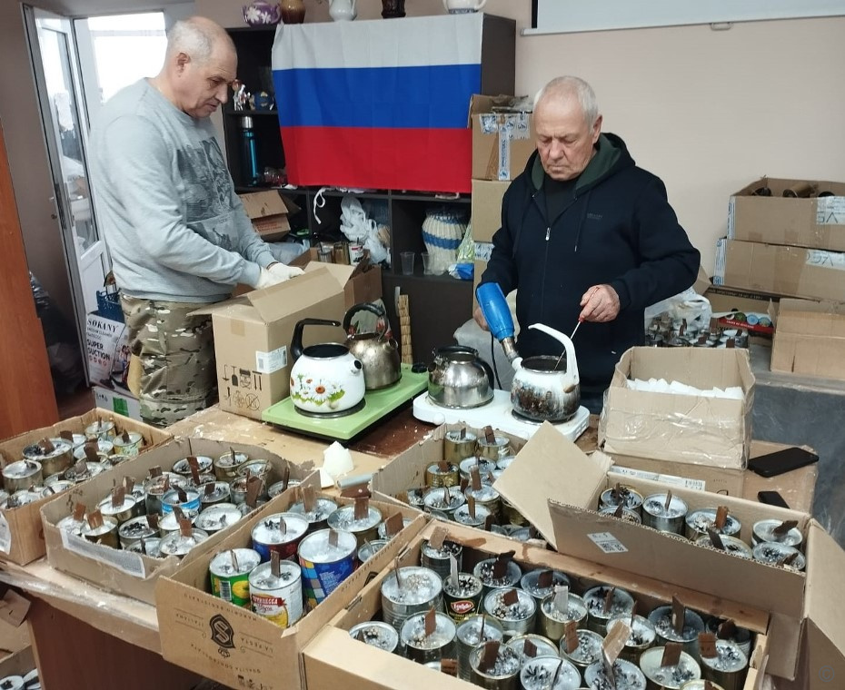 Кроме этого, в помещении ТОС п.Казённая Заимка в минувшие выходные активные жители посёлка и волонтёры Центра волонтёрских проектов и добровольческих инициатив Алтайского государственного политехнического университета при поддержке депутата Барнаульской городской Думы Ивана Огнева продолжили работу по изготовлению окопных свечей и подушек-косточек. Впервые были сделаны антидроновые шторы в количестве четырёх штук.