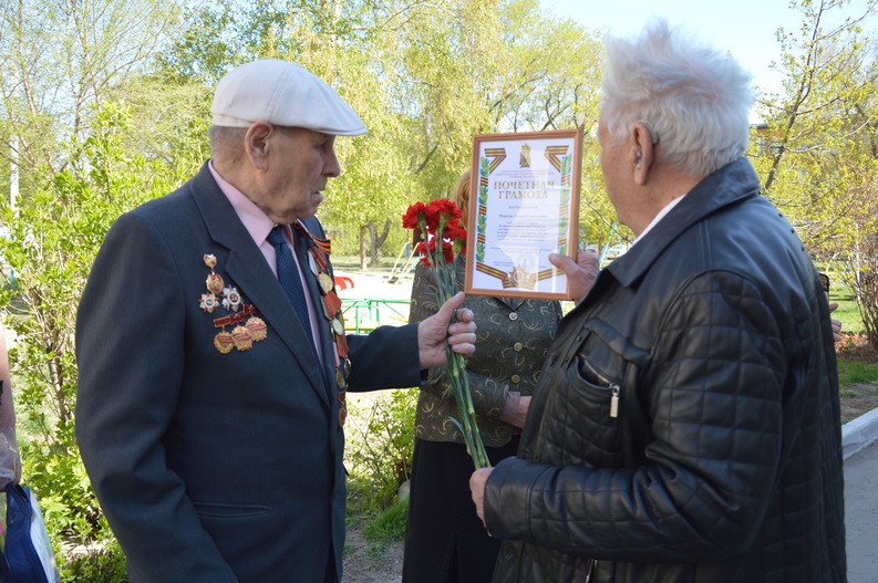 С юбилеем ветерана приехал поздравить председатель отделения Общероссийской общественной организации ветеранов «Российский Союз ветеранов» Октябрьского района, участник Великой Отечественной войны Петр Бобков, а также заместитель администрации Октябрьского района по социальным вопросам Галина Бровко, председатель совета ветеранов завода «ВРЗ» Раиса Цивцина. Гости пожелали имениннику бодрости духа, крепкого здоровья и подарили ценные подарки.
