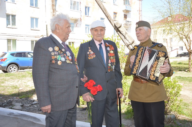 Представители воинской части № 84686 воздушно-космических сил исполнили для Андрея Савельевича музыкальные номера. Житель ВРЗ Владимир Малышев сыграл на гармони песни военных лет.