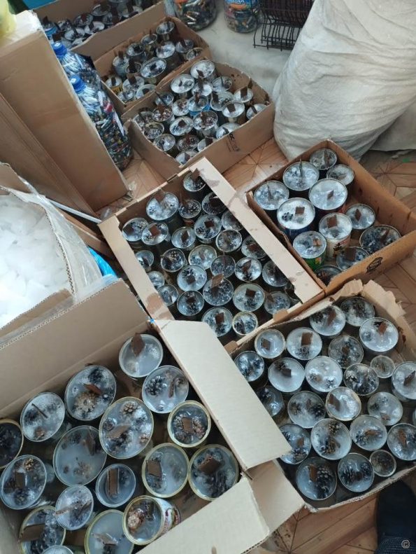 Благодаря неравнодушным жителям посёлка, которые собрали денежные средства, было закуплено 120 кг парафина. Он был нарезан, расплавлен и залит в банки, в которые ранее были уложены еловые и сосновые шишки.