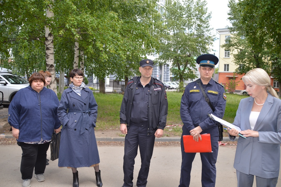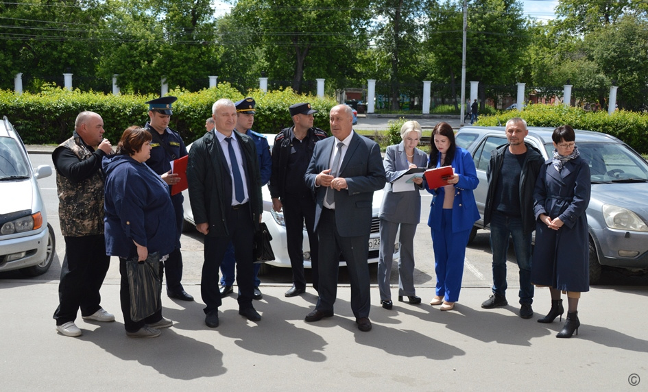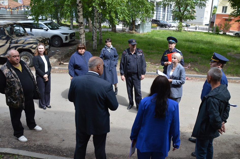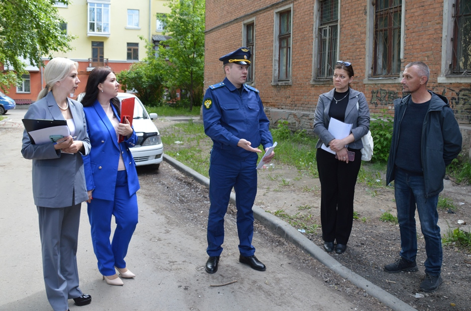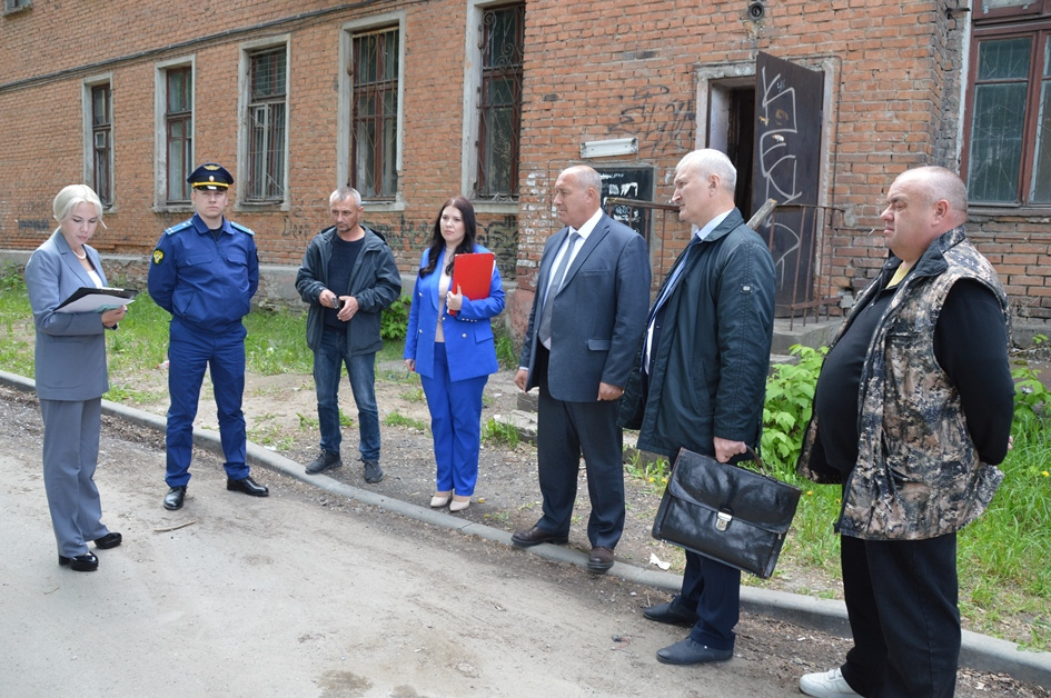 Сегодня, 30 мая, состоялось выездное совещание по вопросу аварийного фасада и антисанитарного состояния территории здания, расположенного по проспекту Ленина, 94.
