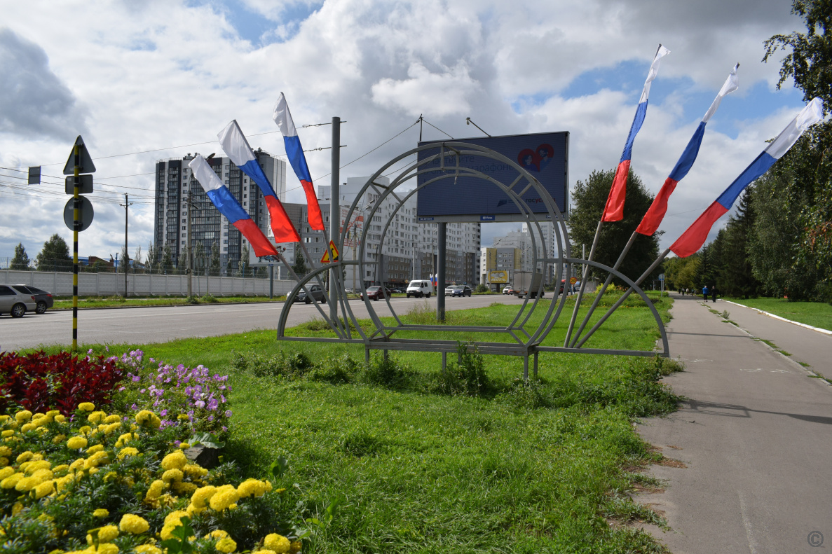 Триколором украшены конструкции, которые установлены по Павловскому тракту, от ул. Попова до ул. Сельскохозяйственной.