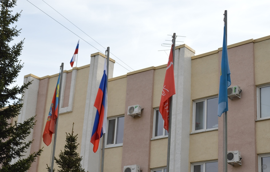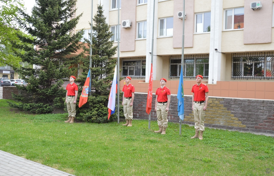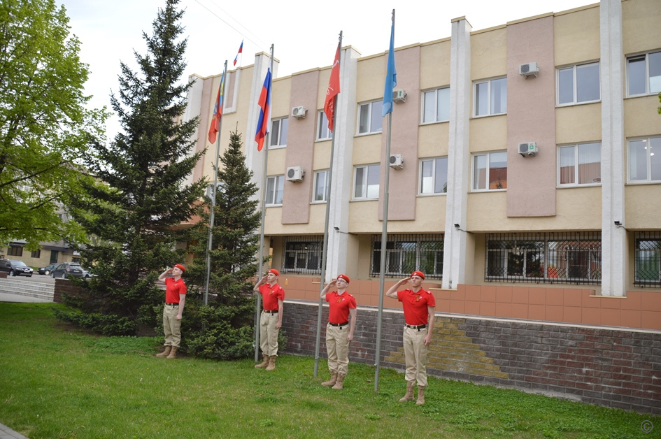 Копию Знамени Победы подняли у здания администрации Октябрьского района
