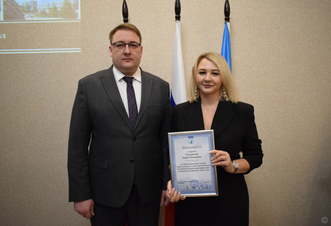 Благодарностью администрации Индустриального района за многолетний добросовестный труд, высокий профессионализм и в связи с празднованием Дня работника органов регистрации прав на недвижимое имущество и сделок с ним поощрен индивидуальный предприниматель Мария Чепуштанова.