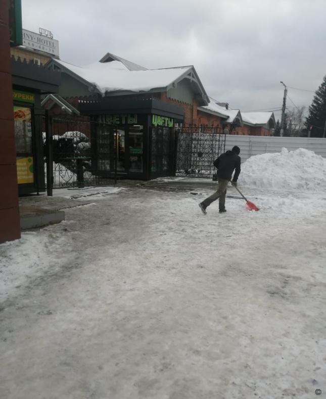 Более ста предприятий потребительского рынка продолжают уборку и посыпку песчано-соляной смесью входных групп.