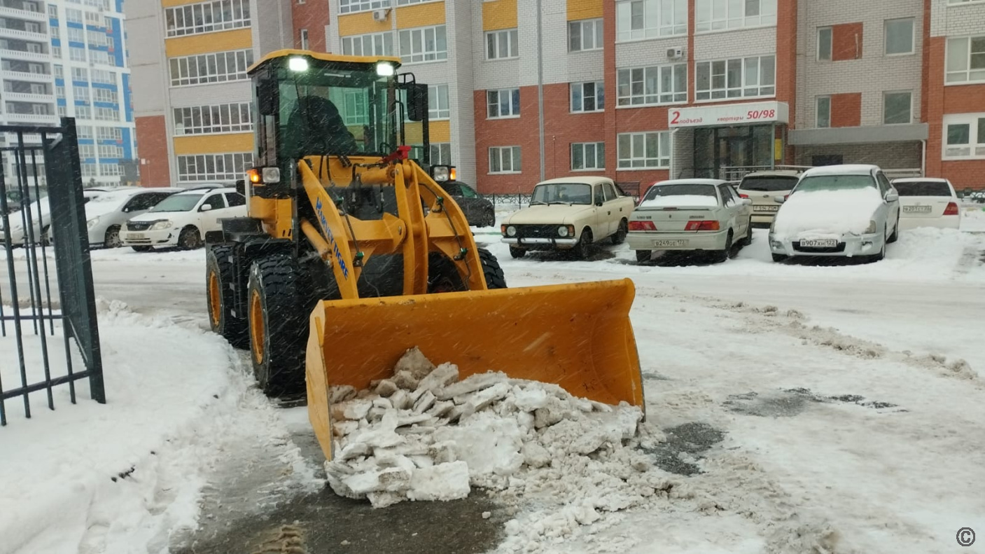 В круглосуточном режиме подрядная организация осуществляет очистку межквартальных проездов, задействовано 2 единицы специализированной техники.