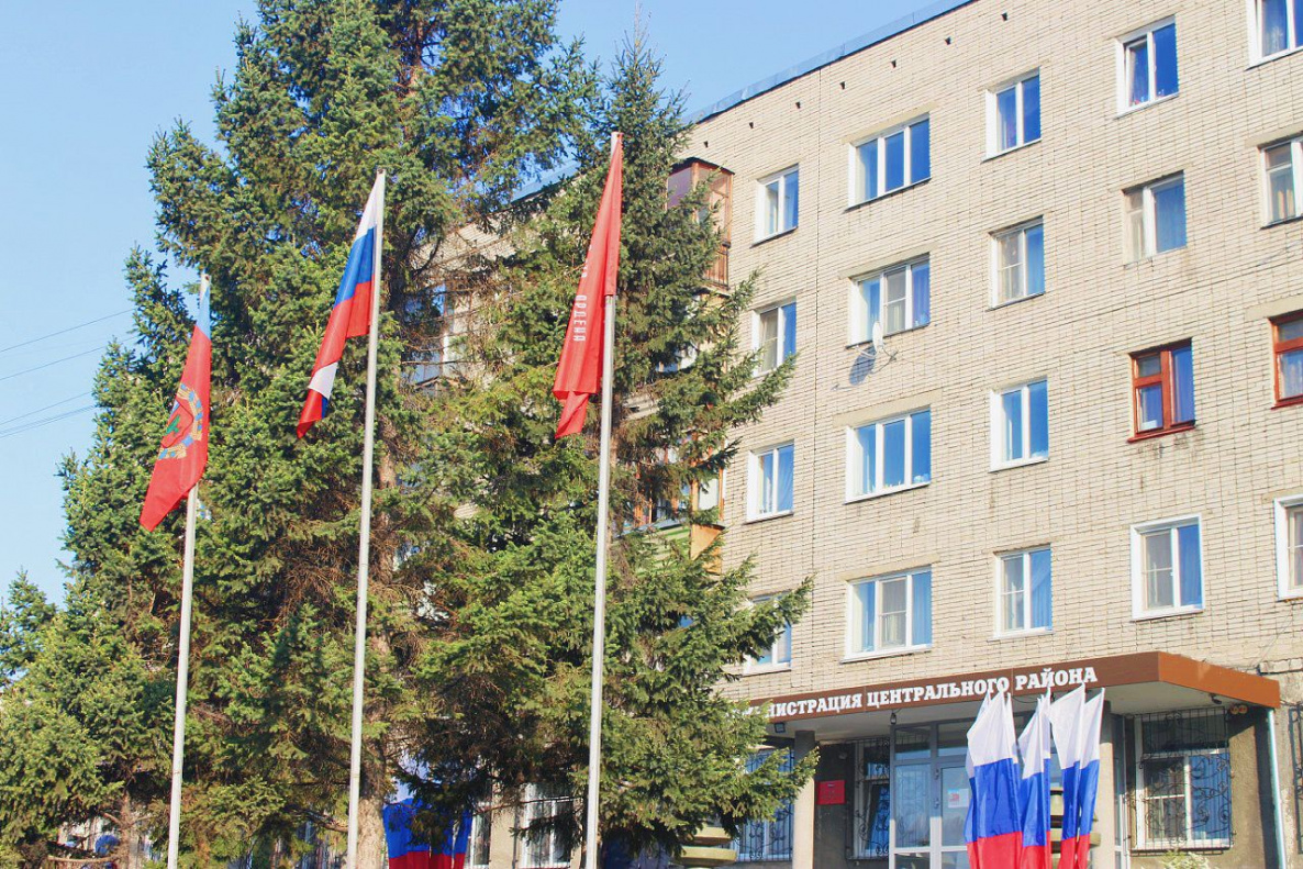 Перед зданием администрации Центрального района поднято Знамя Победы