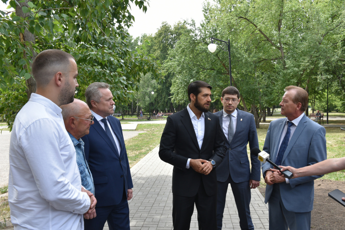 Заместитель главы администрации Барнаула по социальной политике Александр Артемов, депутат Государственной думы Александр Прокопьев, председатель попечительского совета фонда Владимира Шаманова «Защитники Отечества» Артем Шамков совместно с главой администрации Октябрьского района Вячеславом Новиковым оценили готовность спортивной площадки к открытию.