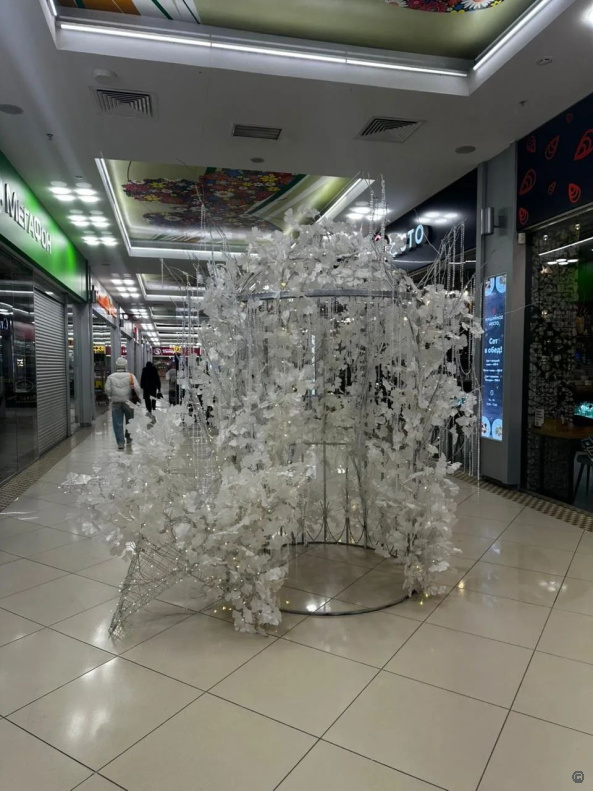 Торговые центры выполняют украшение и внутри зданий. Так, внутри ТЦ «Весна» оформлены 2 тематических фотозоны.
