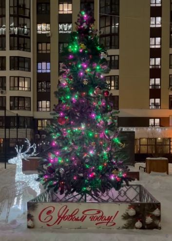 Парковки ТЦ «Огни» и ТЦ «Праздничный» украшают новогодние ели.