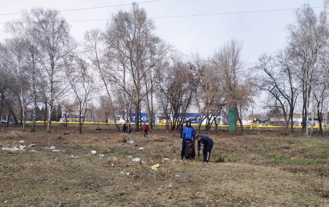 Акция по сбору вытаявшего мусора и сухих веток проходила в зеленой зоне по пр-кту Космонавтов от ул.Малахова в сторону ул.Попова.