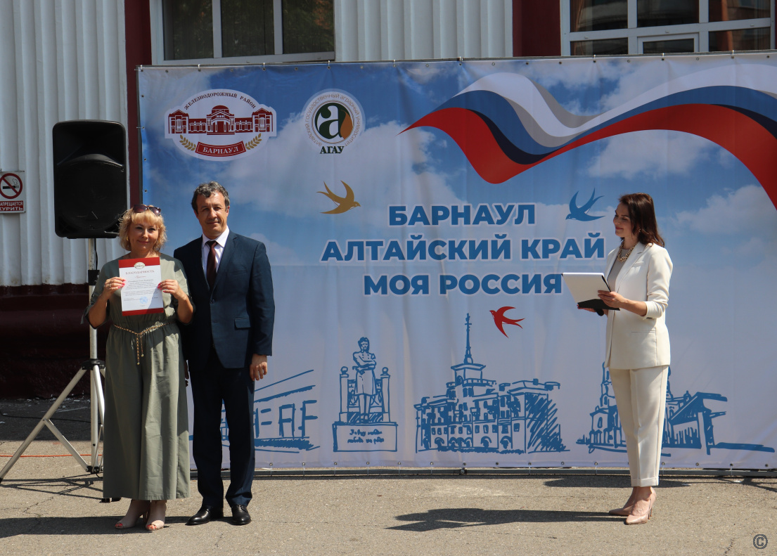 На территории района состоялось мероприятие посвященное Дню России, на котором провели торжественную церемонию вручения паспортов юным барнаульцам.