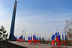 Со стороны Правобережного тракта на новом мосту установили флажки на опорах освещения. Проведена ревизия тематических виньеток с изображением городов и годов их освобождения советскими войсками.
