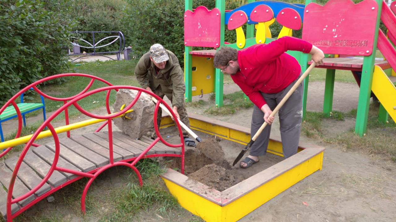 18 июня помощь в ремонте элементов песочницы оказали общественники и управляющая компания «Квартал». Восстановлено основание песочницы, установлен и укреплен покосившийся навес. Также общественники планирут покрасить конструкции.