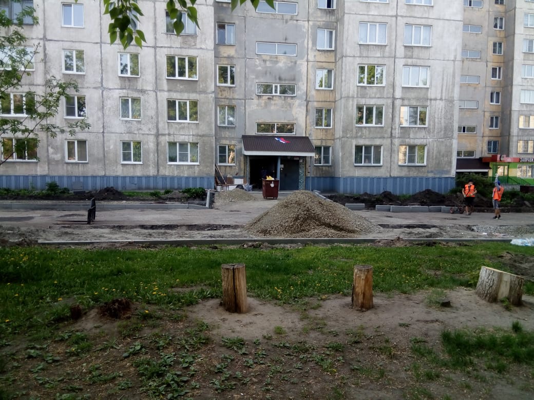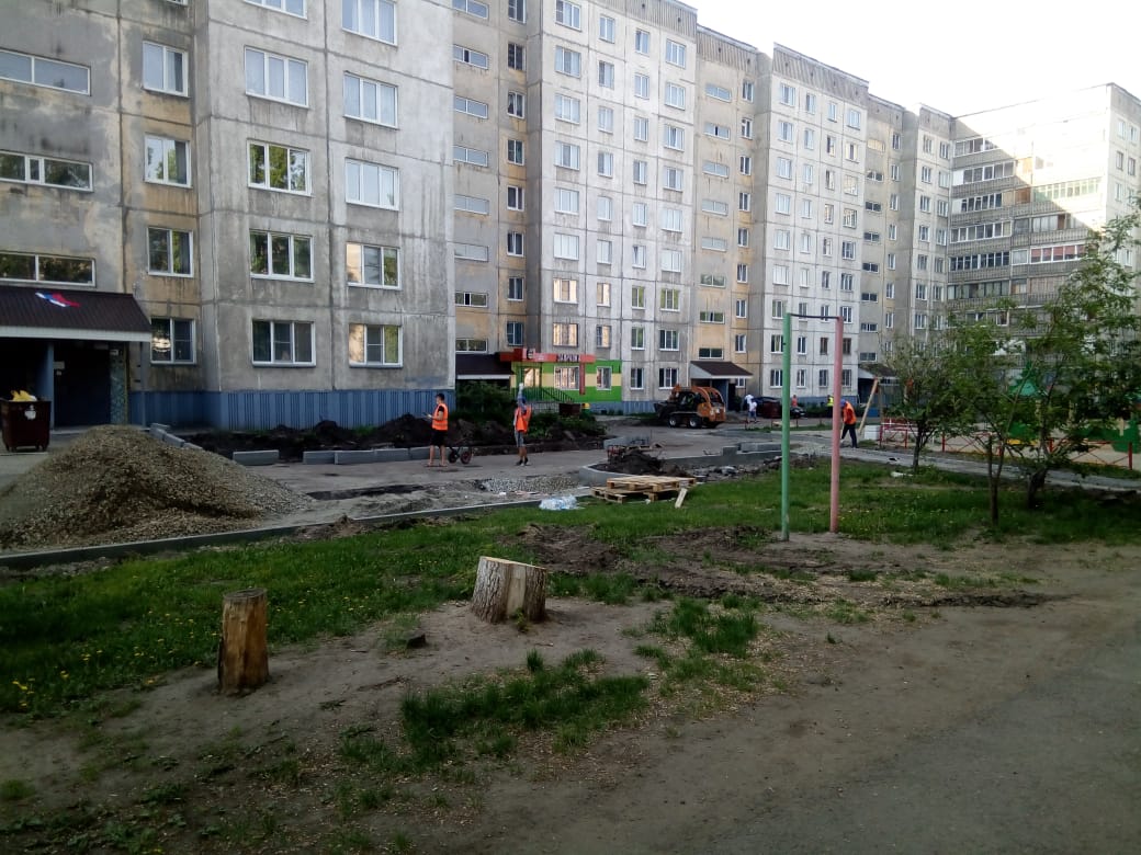 Уже начаты работы во дворе дома по улице Горно-Алтайская,15. Подрядной организацией ООО СПК «Индустрия» проводятся подготовительные работы по асфальтированию парковочных мест и монтаж бордюрного камня.