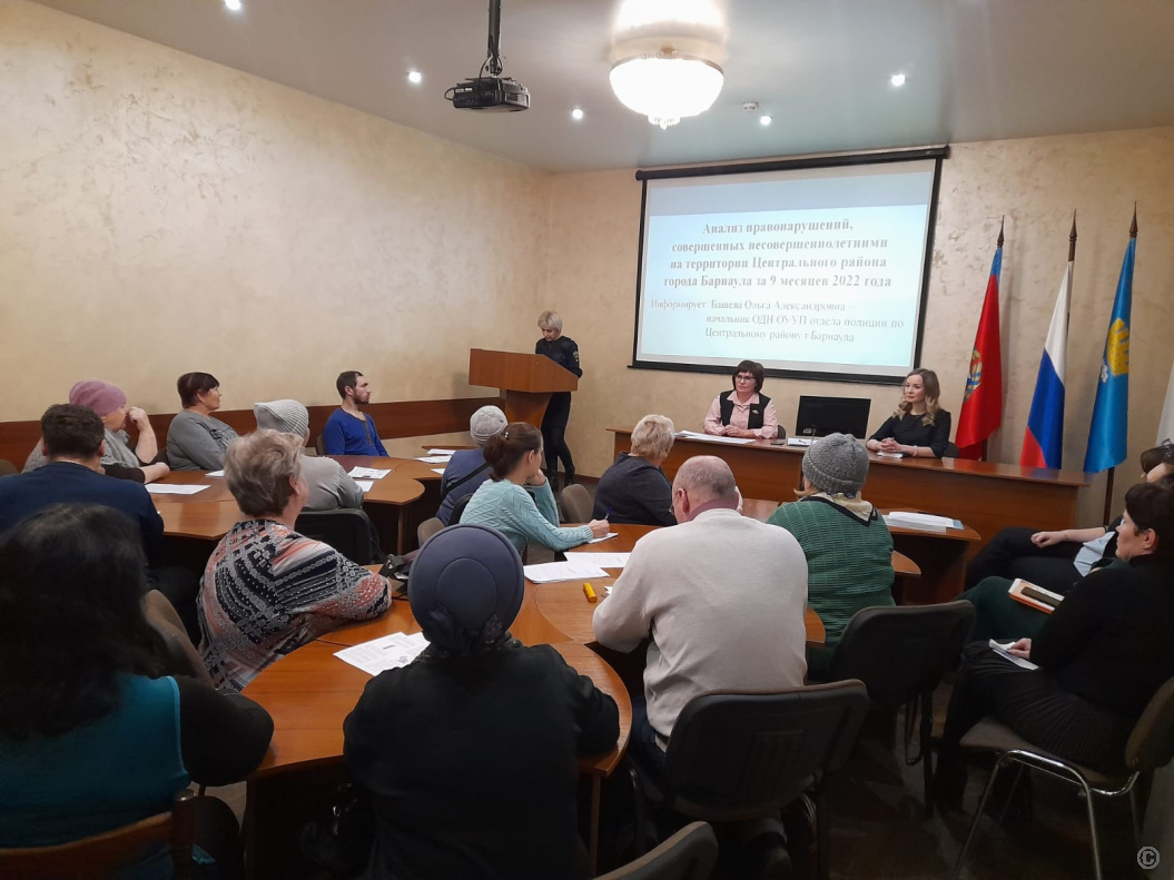 О правонарушениях, совершенных несовершеннолетними на территории Центрального района города Барнаула за 10 месяцев 2022 года, а также об административной ответственности подростков, законных представителей об исполнении закона Алтайского края от 07.12.2009 №99-ЗС «Об ограничении пребывания несовершеннолетних в общественных местах на территории Алтайского края», участников собрания проинформировала Ольга Башева, начальник ОДН ОУУП отдела полиции по Центральному району г.Барнаула.