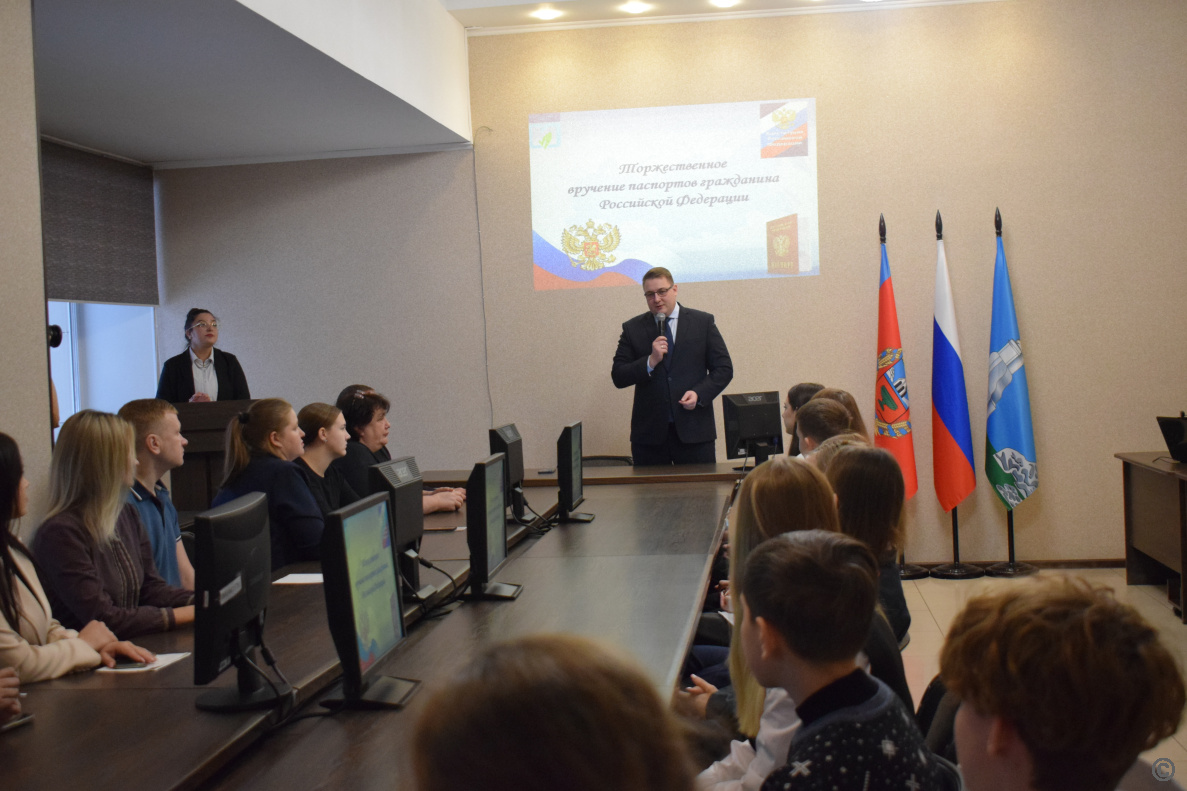 Сегодня, 12 декабря, в День Конституции России, в торжественной обстановке в администрации Индустриального района состоялось вручение паспортов юношам и девушкам, которым исполнилось 14 лет.
