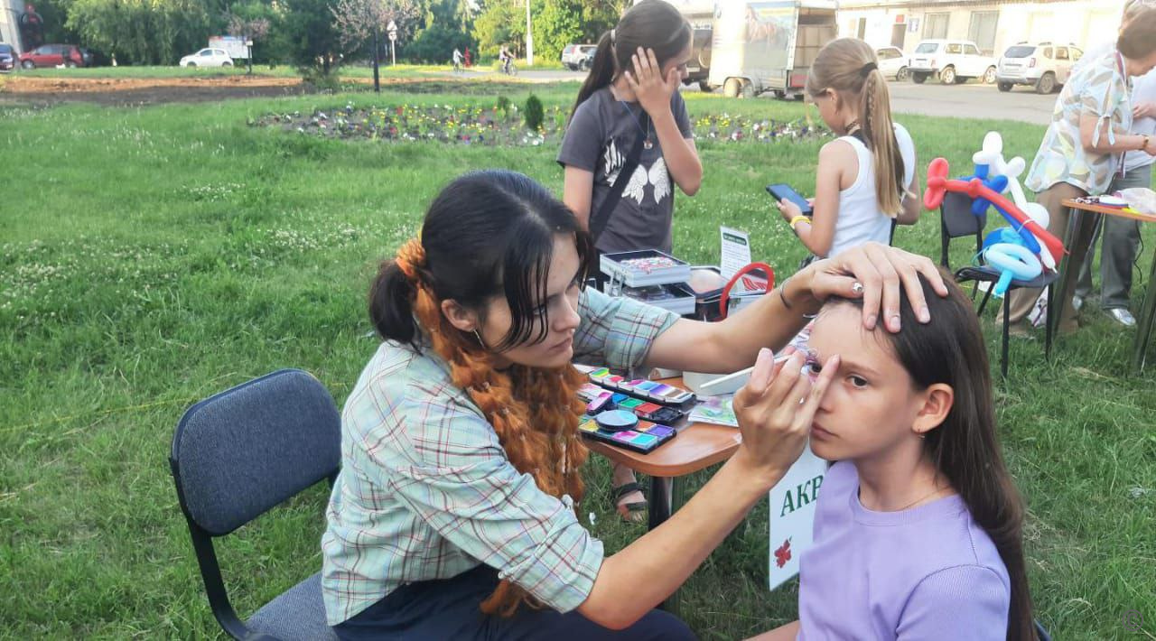 В праздничную программу вошли музыкальные поздравления от творческих коллективов Научногородокского клубного объединения, мастер - класс по изготовлению брошей "триколор" и фото зона от ТОС "Научный", а также мастер-класс по изготовлению фигур из воздушных шаров от активиста поселка надежды Гамбург, работала площадка по аквагриму.