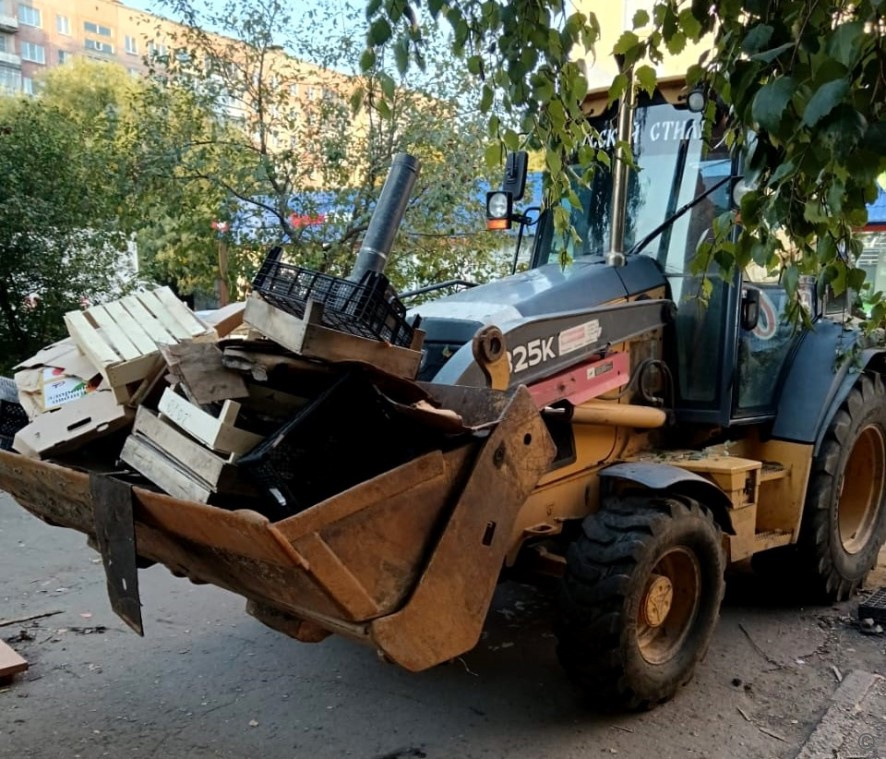 Сегодня совместно с подрядной организацией и работниками управляющей компании «Вереск» была очищена от мусора, ящиков, коробок, металлических и деревянных конструкций, а также другого инвентаря, оставленного уличными торговцами, улица Попова (малая).