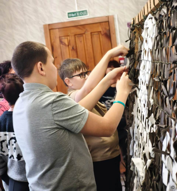 Ребята с большим интересом под руководством опытных мастериц освоили основные техники плетения, как на сетку-основу крепить ленточки разных цветов, и научились создавать эффективные укрытия для техники и позиций наших солдат.