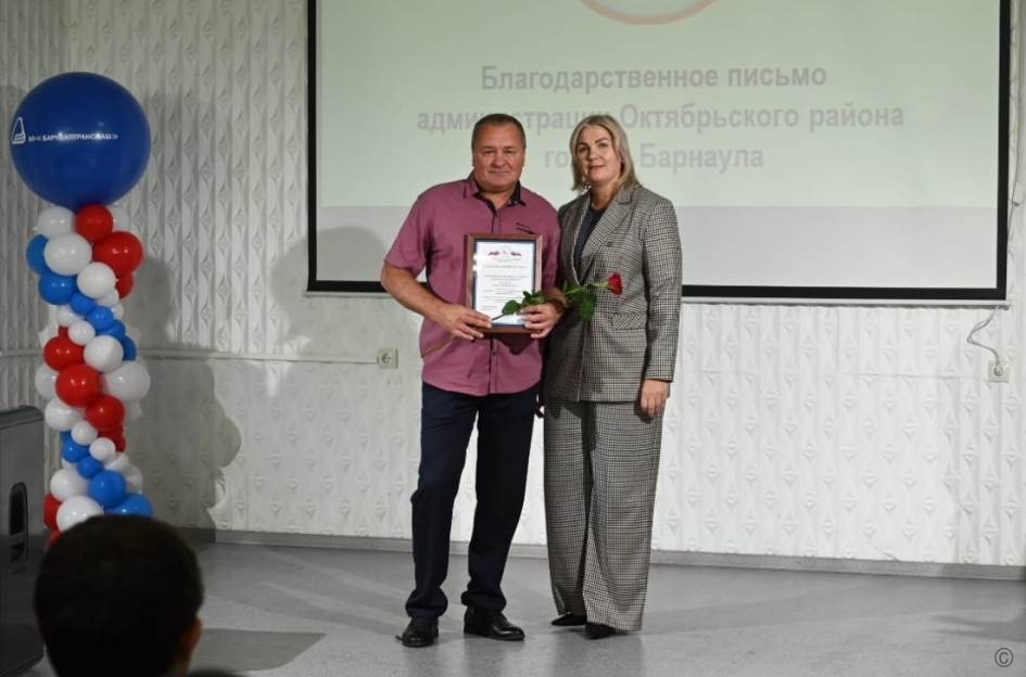 Заместитель главы администрации Октябрьского района города Барнаула по социальным вопросам Галина Бровко поздравила работников Барнаултрансмаша, поблагодарила их за труд, пожелала дальнейшего развития в отрасли.